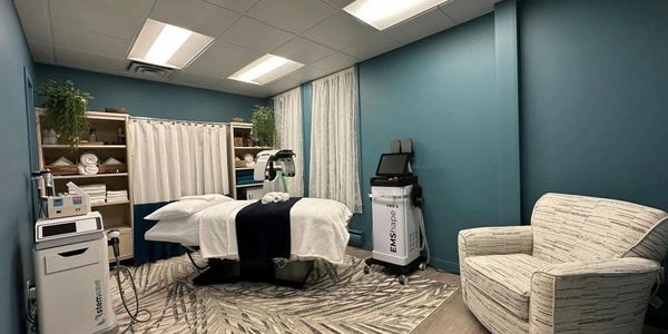 EMShape Neo-X body sculpting: Dual-action technology that builds muscle while burning fat — tightening, toning, and boosting metabolism.